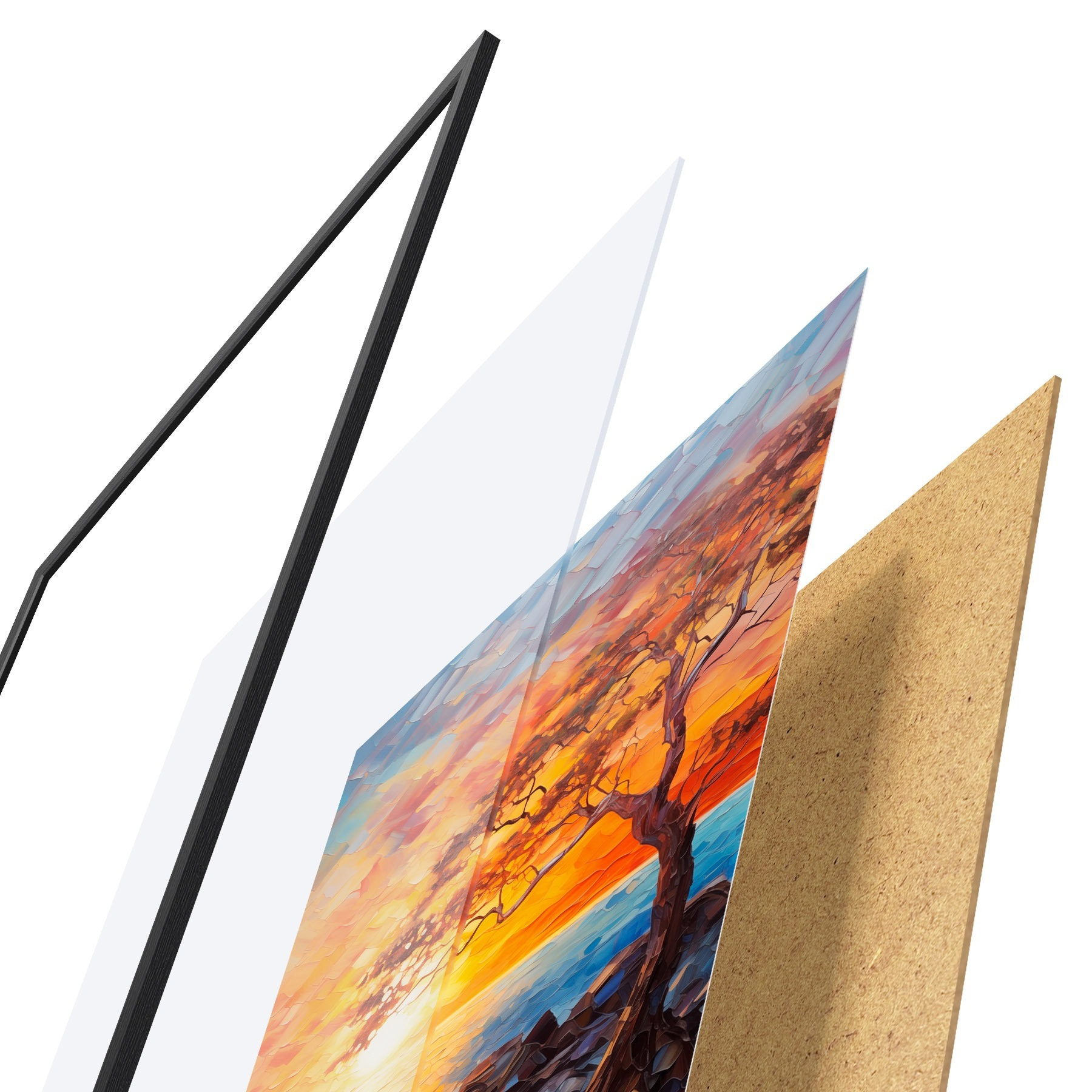 Plakāts sastāv no rāmja, pleksstikla, iespiestā attēla un skaidu plātnes pamatnes. Plakātu var uzreiz piekarināt pie sienas, pateicoties aizmugurē esošajiem stiprinājumiem.