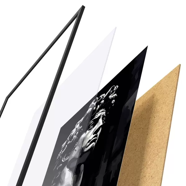 Plakāts sastāv no rāmja, pleksstikla, iespiestā attēla un skaidu plātnes pamatnes. Plakātu var uzreiz piekarināt pie sienas, pateicoties aizmugurē esošajiem stiprinājumiem.