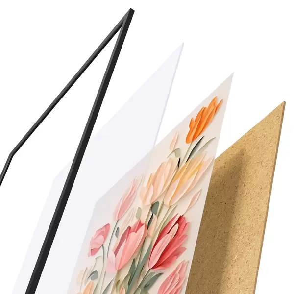 Plakāts sastāv no rāmja, pleksstikla, iespiestā attēla un skaidu plātnes pamatnes. Plakātu var uzreiz piekarināt pie sienas, pateicoties aizmugurē esošajiem stiprinājumiem.