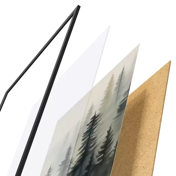 Plakāts sastāv no rāmja, pleksstikla, iespiestā attēla un skaidu plātnes pamatnes. Plakātu var uzreiz piekarināt pie sienas, pateicoties aizmugurē esošajiem stiprinājumiem.