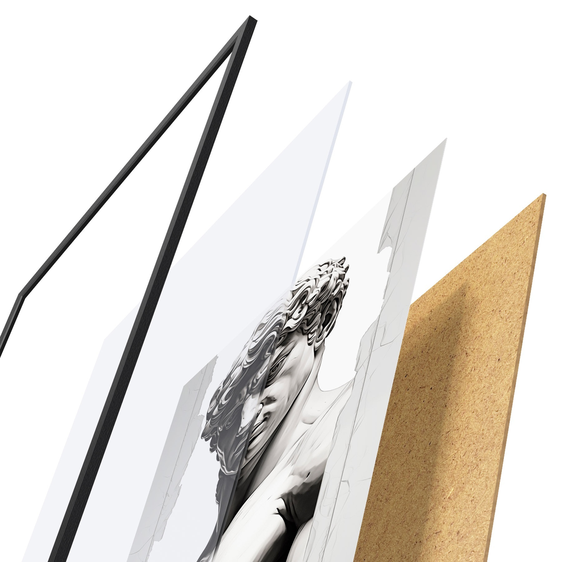 Plakāts sastāv no rāmja, pleksstikla, iespiestā attēla un skaidu plātnes pamatnes. Plakātu var uzreiz piekarināt pie sienas, pateicoties aizmugurē esošajiem stiprinājumiem.