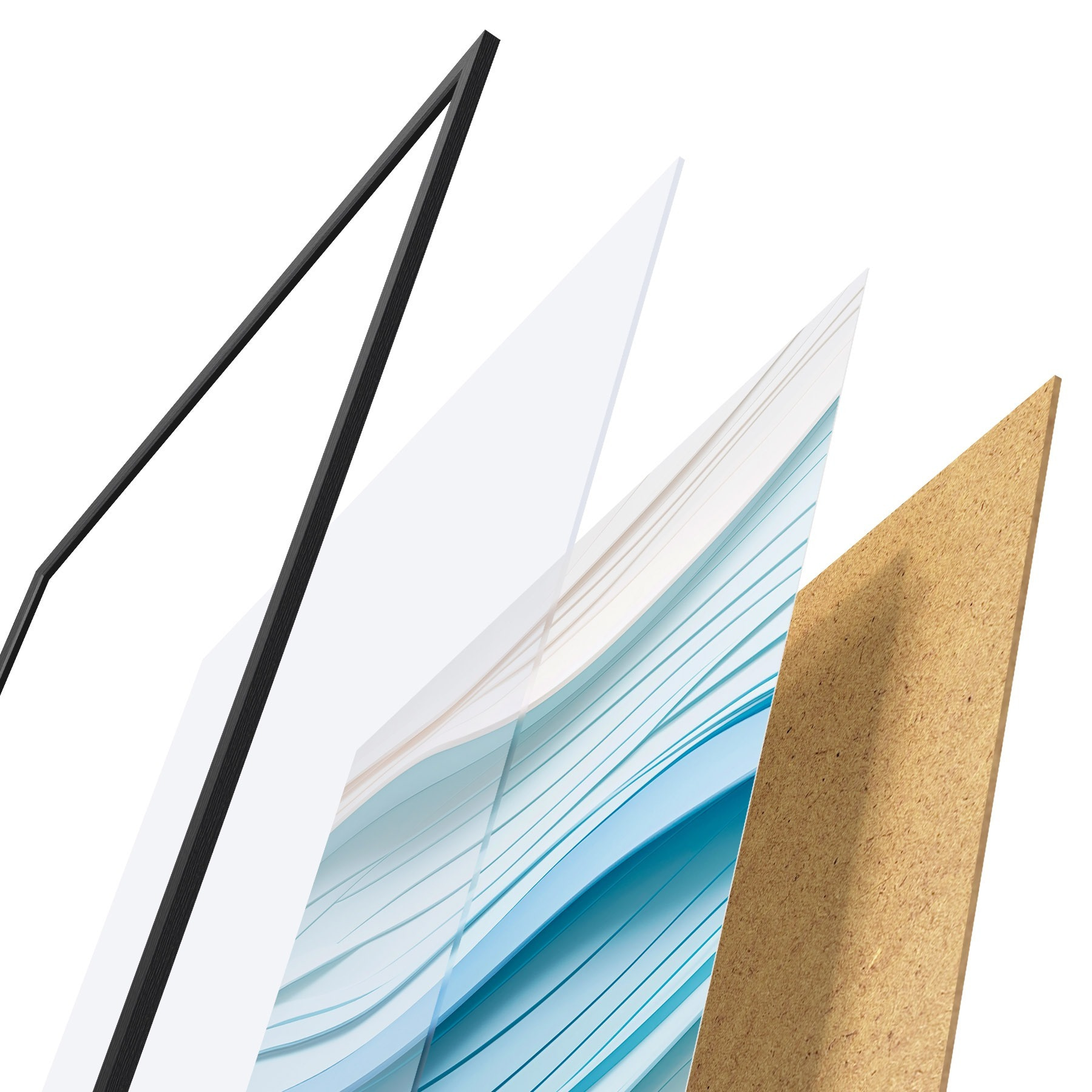 Plakāts sastāv no rāmja, pleksstikla, iespiestā attēla un skaidu plātnes pamatnes. Plakātu var uzreiz piekarināt pie sienas, pateicoties aizmugurē esošajiem stiprinājumiem.