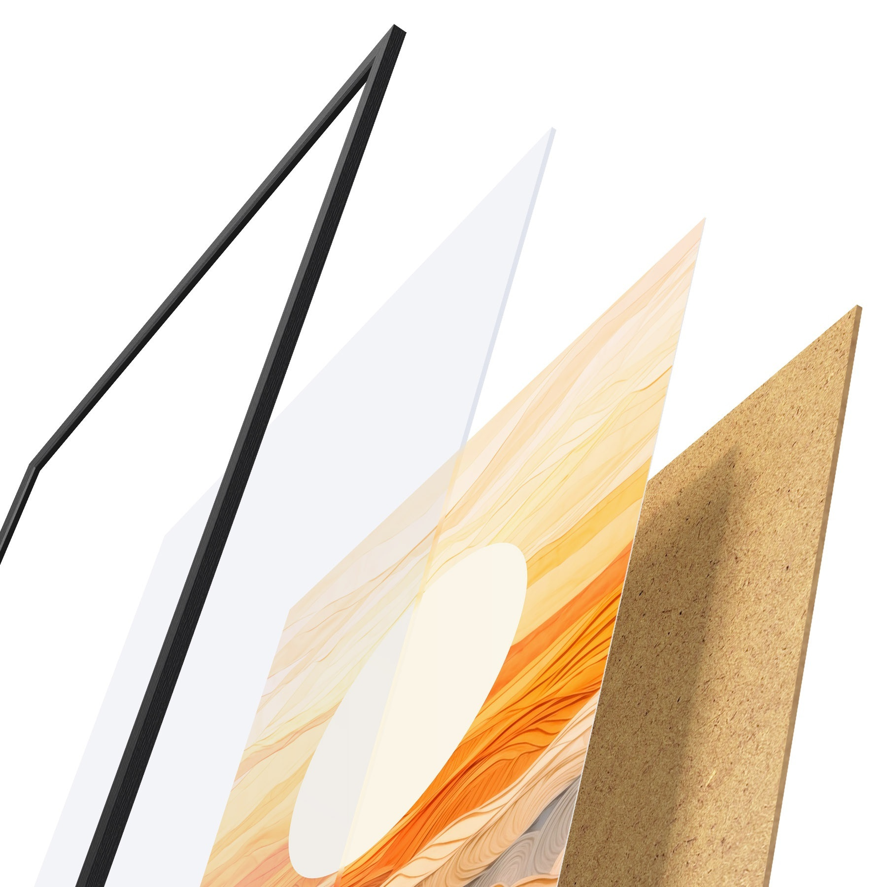 Plakāts sastāv no rāmja, pleksstikla, iespiestā attēla un skaidu plātnes pamatnes. Plakātu var uzreiz piekarināt pie sienas, pateicoties aizmugurē esošajiem stiprinājumiem.