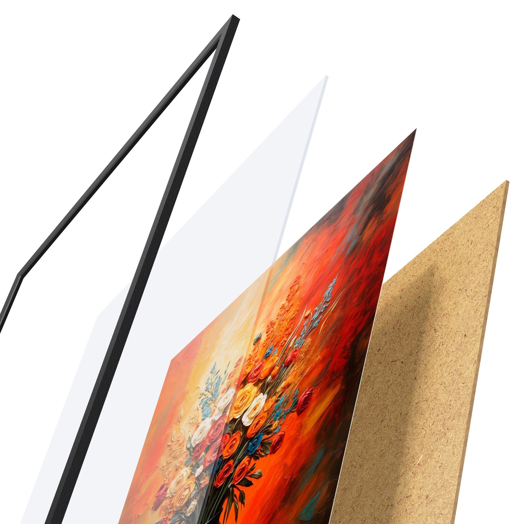 Plakāts sastāv no rāmja, pleksstikla, iespiestā attēla un skaidu plātnes pamatnes. Plakātu var uzreiz piekarināt pie sienas, pateicoties aizmugurē esošajiem stiprinājumiem.