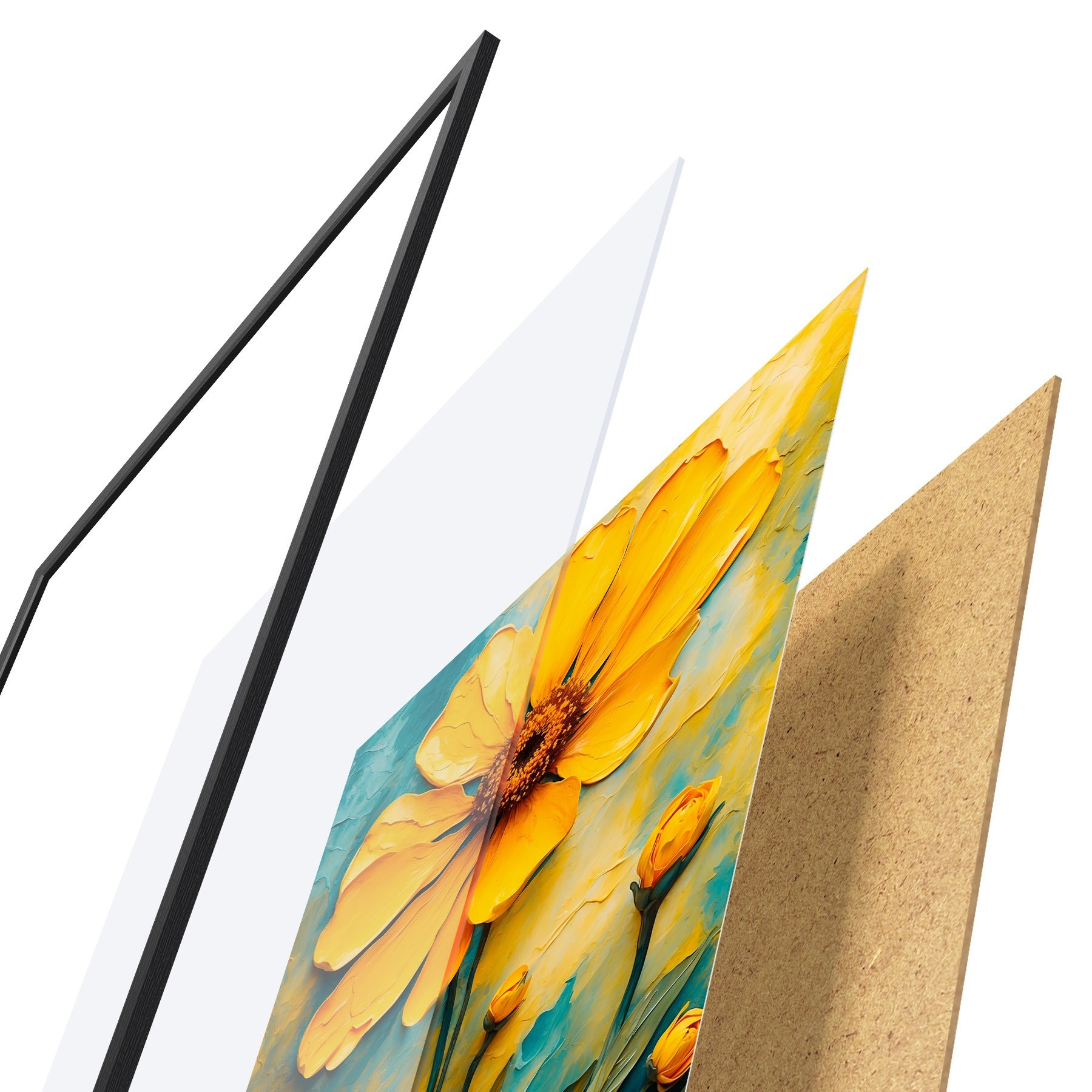 Plakāts sastāv no rāmja, pleksstikla, iespiestā attēla un skaidu plātnes pamatnes. Plakātu var uzreiz piekarināt pie sienas, pateicoties aizmugurē esošajiem stiprinājumiem.