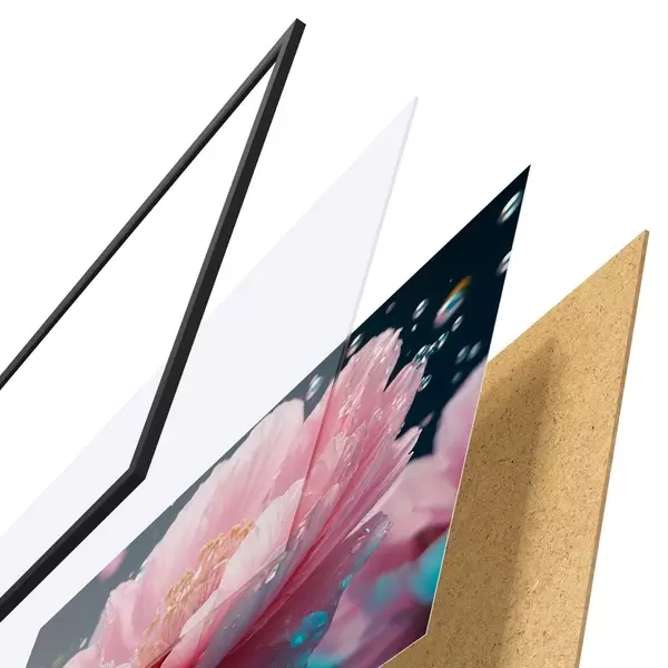 Plakāts sastāv no rāmja, pleksstikla, iespiestā attēla un skaidu plātnes pamatnes. Plakātu var uzreiz piekarināt pie sienas, pateicoties aizmugurē esošajiem stiprinājumiem.