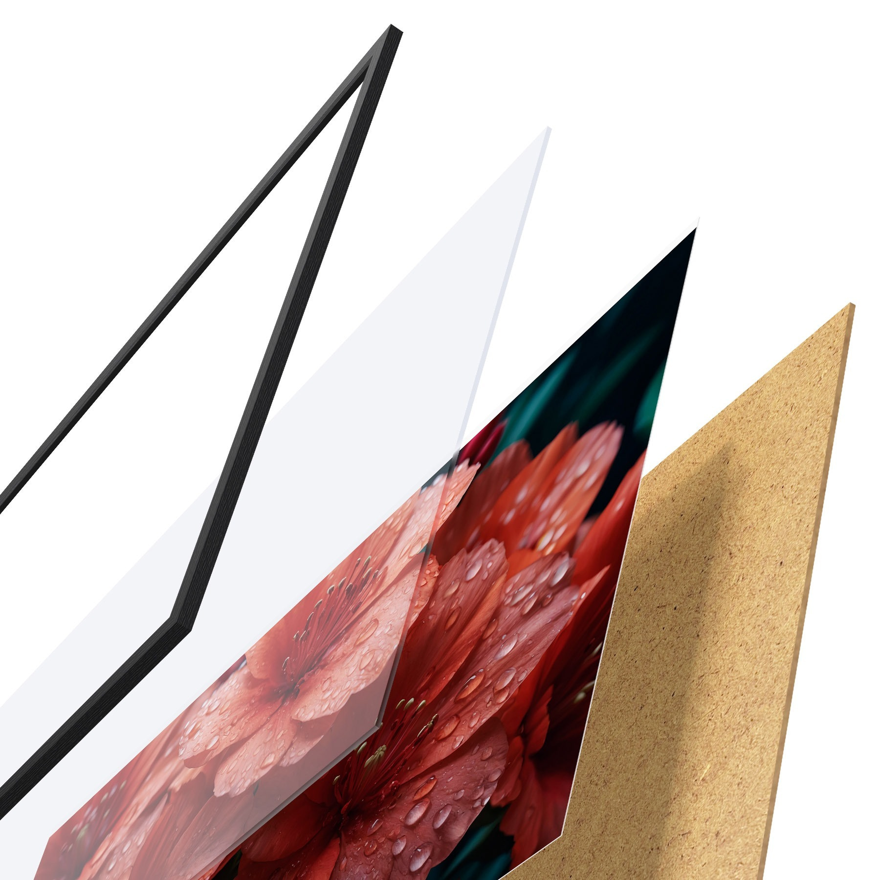 Plakāts sastāv no rāmja, pleksstikla, iespiestā attēla un skaidu plātnes pamatnes. Plakātu var uzreiz piekarināt pie sienas, pateicoties aizmugurē esošajiem stiprinājumiem.