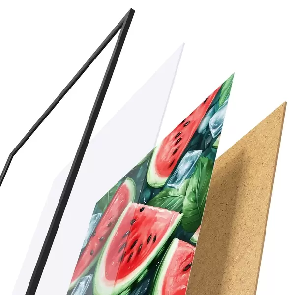 Plakāts sastāv no rāmja, pleksstikla, iespiestā attēla un skaidu plātnes pamatnes. Plakātu var uzreiz piekarināt pie sienas, pateicoties aizmugurē esošajiem stiprinājumiem.