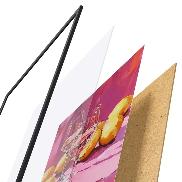 Plakāts sastāv no rāmja, pleksstikla, iespiestā attēla un skaidu plātnes pamatnes. Plakātu var uzreiz piekarināt pie sienas, pateicoties aizmugurē esošajiem stiprinājumiem.