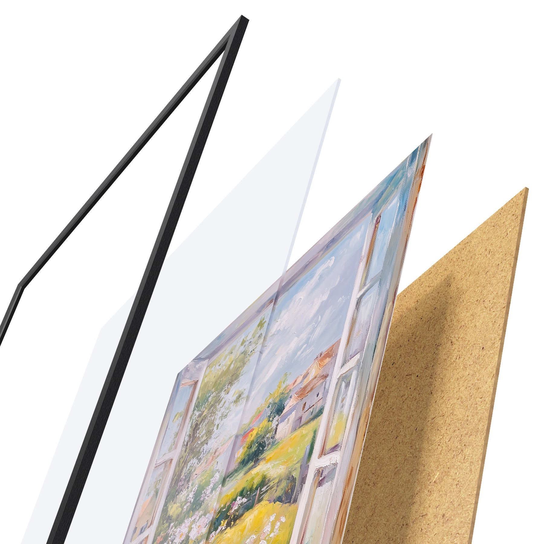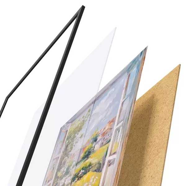 Plakāts sastāv no rāmja, pleksstikla, iespiestā attēla un skaidu plātnes pamatnes. Plakātu var uzreiz piekarināt pie sienas, pateicoties aizmugurē esošajiem stiprinājumiem.