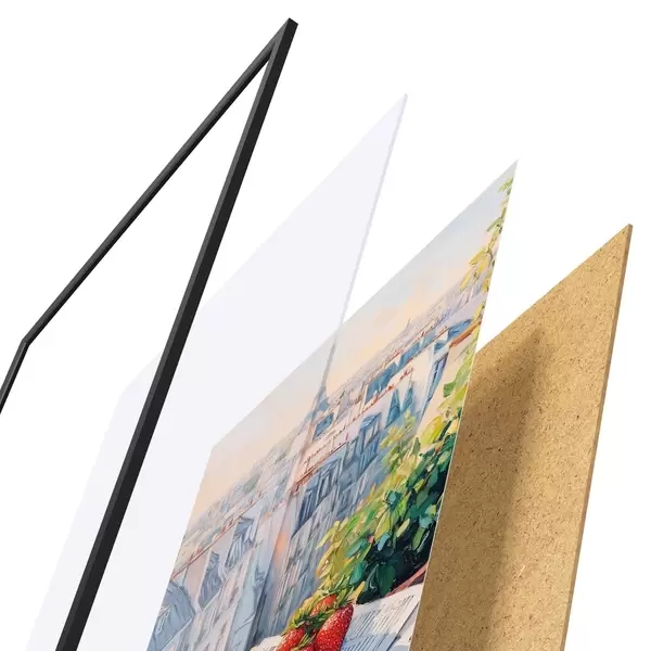 Plakāts sastāv no rāmja, pleksstikla, iespiestā attēla un skaidu plātnes pamatnes. Plakātu var uzreiz piekarināt pie sienas, pateicoties aizmugurē esošajiem stiprinājumiem.