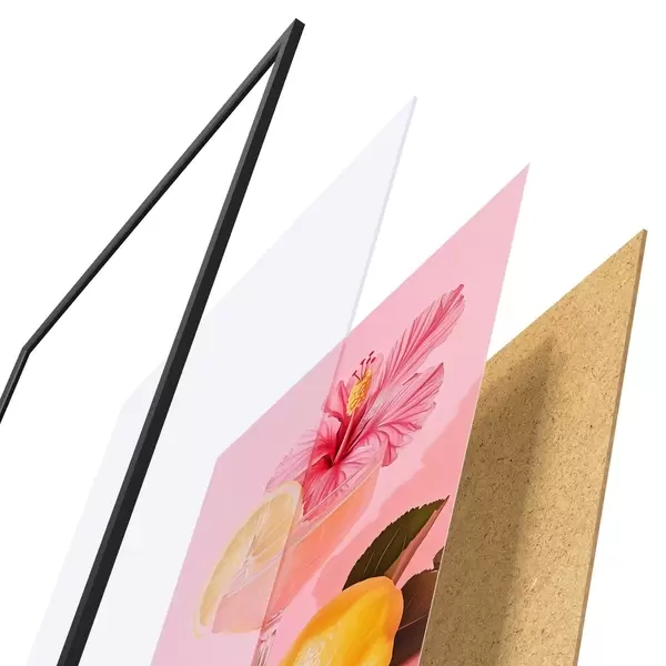 Plakāts sastāv no rāmja, pleksstikla, iespiestā attēla un skaidu plātnes pamatnes. Plakātu var uzreiz piekarināt pie sienas, pateicoties aizmugurē esošajiem stiprinājumiem.