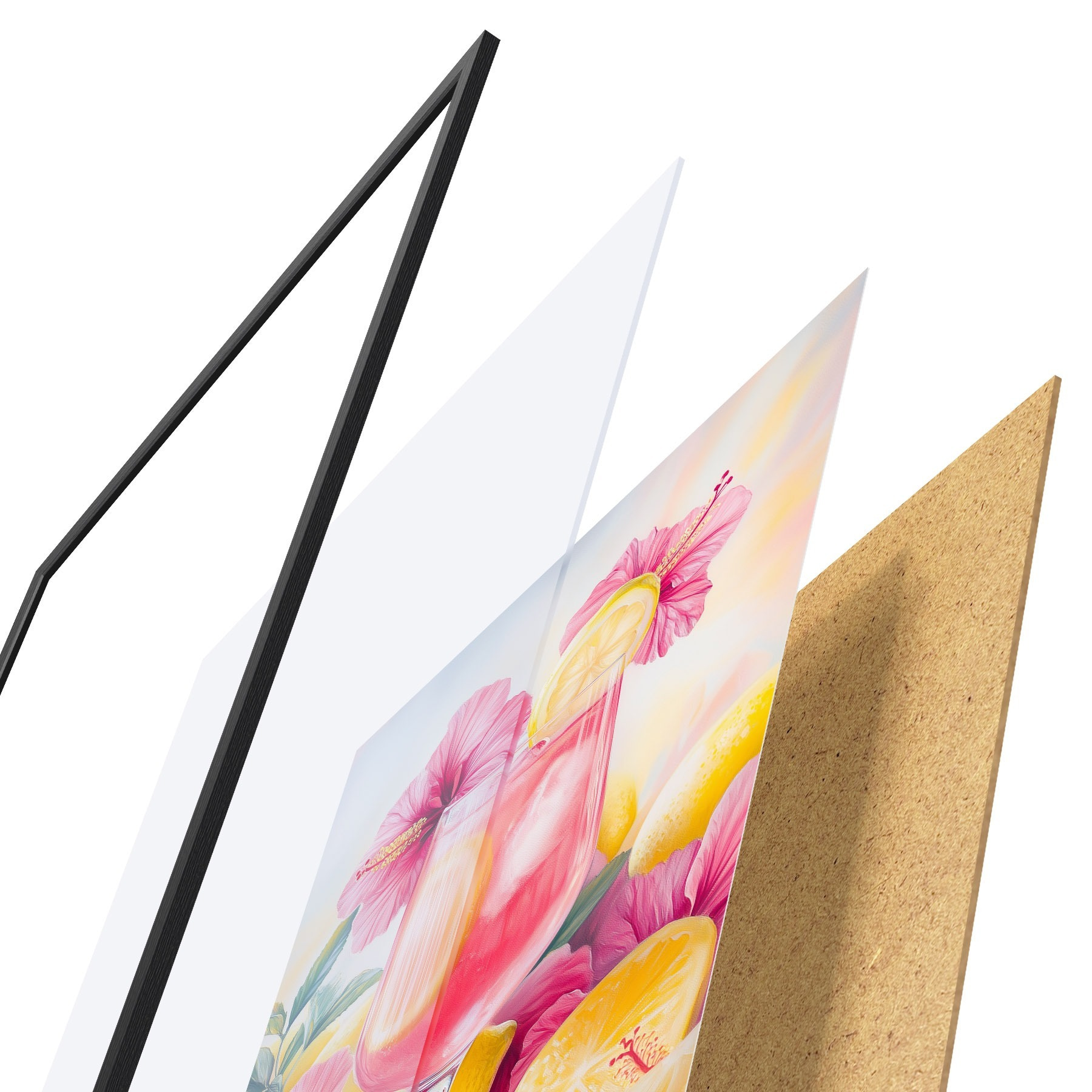 Plakāts sastāv no rāmja, pleksstikla, iespiestā attēla un skaidu plātnes pamatnes. Plakātu var uzreiz piekarināt pie sienas, pateicoties aizmugurē esošajiem stiprinājumiem.