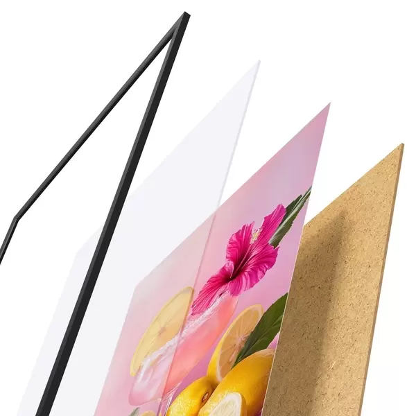 Plakāts sastāv no rāmja, pleksstikla, iespiestā attēla un skaidu plātnes pamatnes. Plakātu var uzreiz piekarināt pie sienas, pateicoties aizmugurē esošajiem stiprinājumiem.