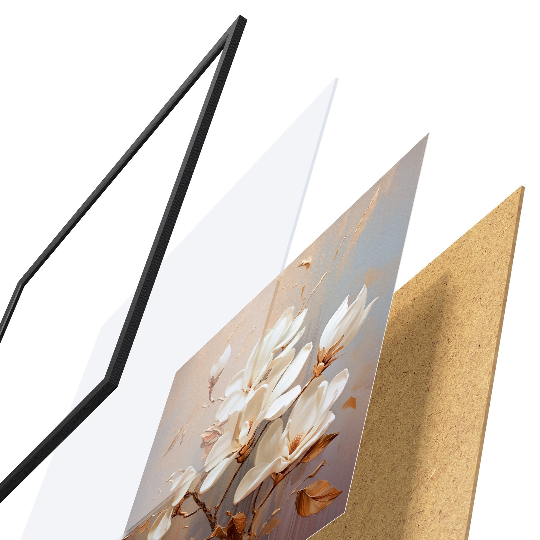 Plakāts sastāv no rāmja, pleksstikla, iespiestā attēla un skaidu plātnes pamatnes. Plakātu var uzreiz piekarināt pie sienas, pateicoties aizmugurē esošajiem stiprinājumiem.