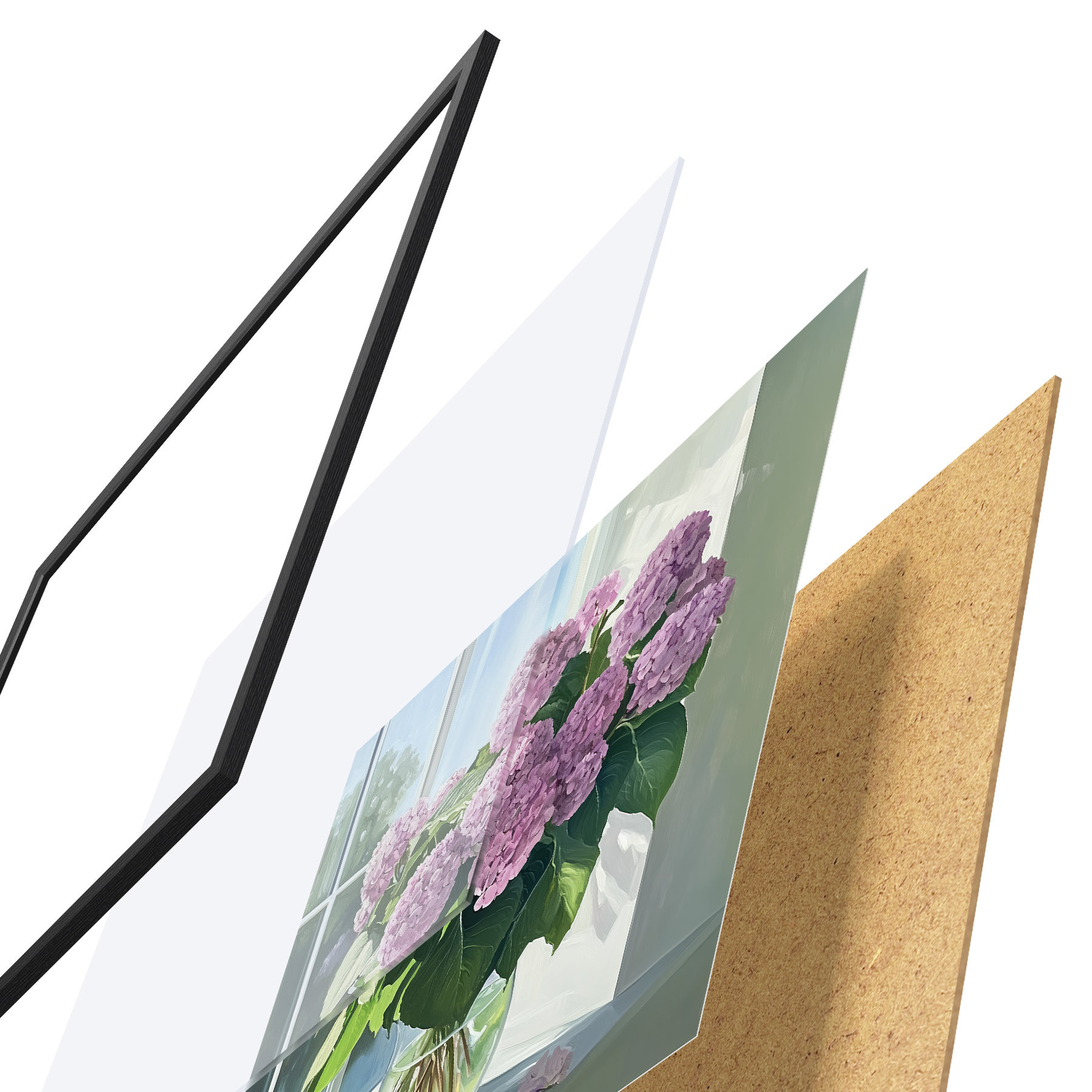 Plakāts sastāv no rāmja, pleksstikla, iespiestā attēla un skaidu plātnes pamatnes. Plakātu var uzreiz piekarināt pie sienas, pateicoties aizmugurē esošajiem stiprinājumiem.
