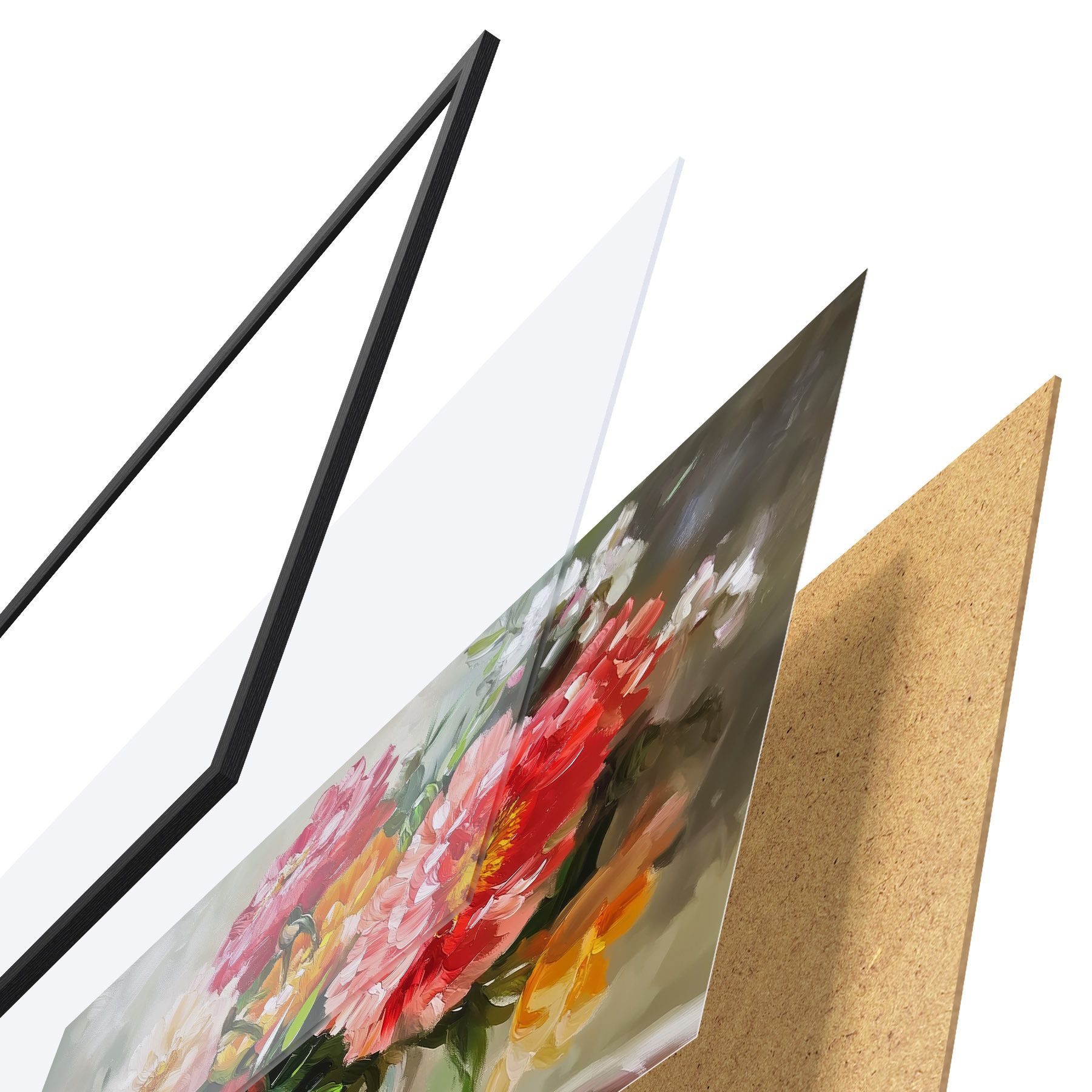 Plakāts sastāv no rāmja, pleksstikla, iespiestā attēla un skaidu plātnes pamatnes. Plakātu var uzreiz piekarināt pie sienas, pateicoties aizmugurē esošajiem stiprinājumiem.