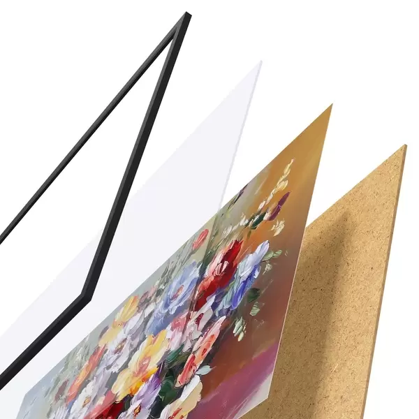 Plakāts sastāv no rāmja, pleksstikla, iespiestā attēla un skaidu plātnes pamatnes. Plakātu var uzreiz piekarināt pie sienas, pateicoties aizmugurē esošajiem stiprinājumiem.