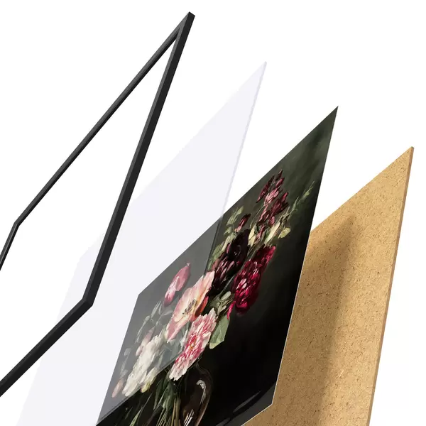 Plakāts sastāv no rāmja, pleksstikla, iespiestā attēla un skaidu plātnes pamatnes. Plakātu var uzreiz piekarināt pie sienas, pateicoties aizmugurē esošajiem stiprinājumiem.