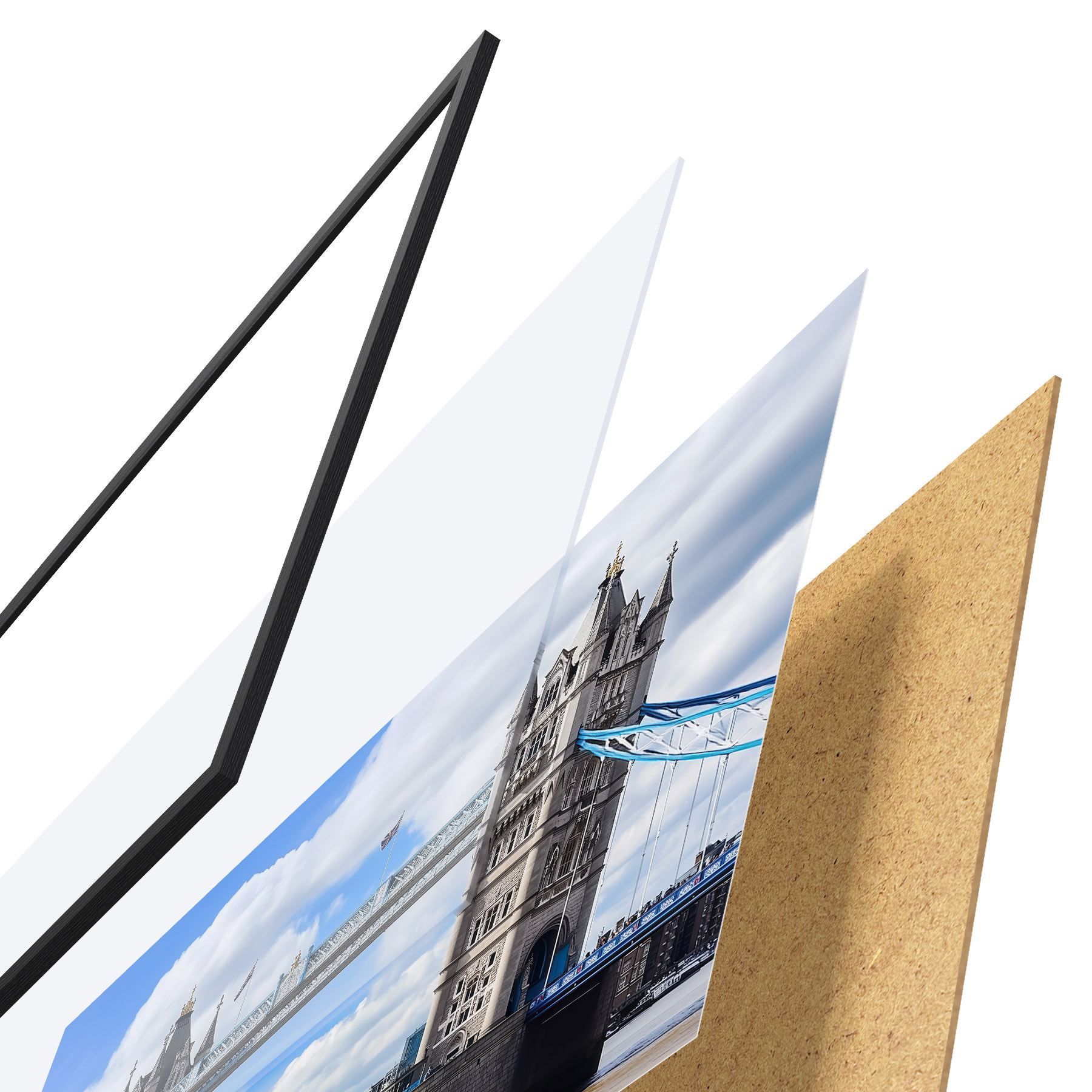 Plakāts sastāv no rāmja, pleksstikla, iespiestā attēla un skaidu plātnes pamatnes. Plakātu var uzreiz piekarināt pie sienas, pateicoties aizmugurē esošajiem stiprinājumiem.