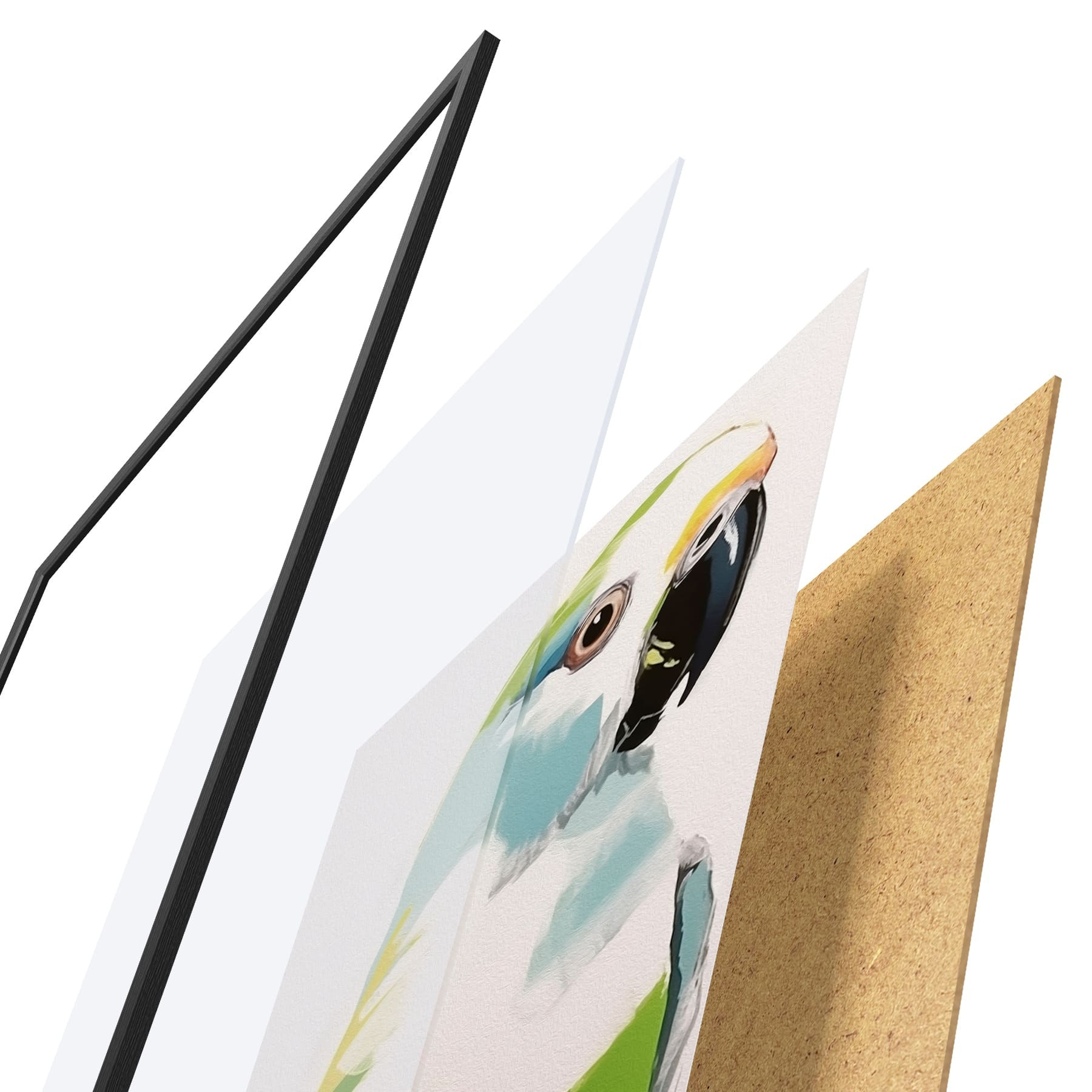 Plakāts sastāv no rāmja, pleksstikla, iespiestā attēla un skaidu plātnes pamatnes. Plakātu var uzreiz piekarināt pie sienas, pateicoties aizmugurē esošajiem stiprinājumiem.