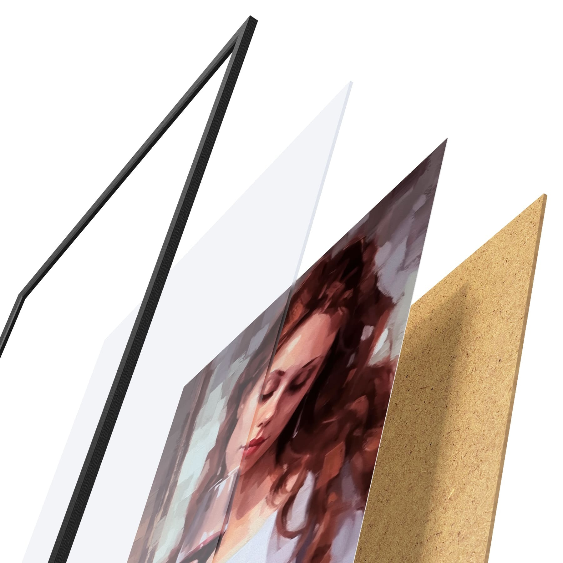Plakāts sastāv no rāmja, pleksstikla, iespiestā attēla un skaidu plātnes pamatnes. Plakātu var uzreiz piekarināt pie sienas, pateicoties aizmugurē esošajiem stiprinājumiem.