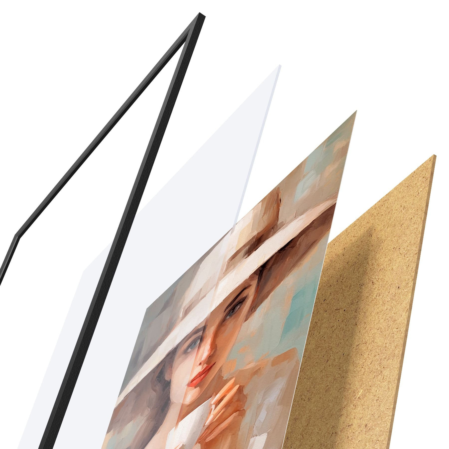 Plakāts sastāv no rāmja, pleksstikla, iespiestā attēla un skaidu plātnes pamatnes. Plakātu var uzreiz piekarināt pie sienas, pateicoties aizmugurē esošajiem stiprinājumiem.