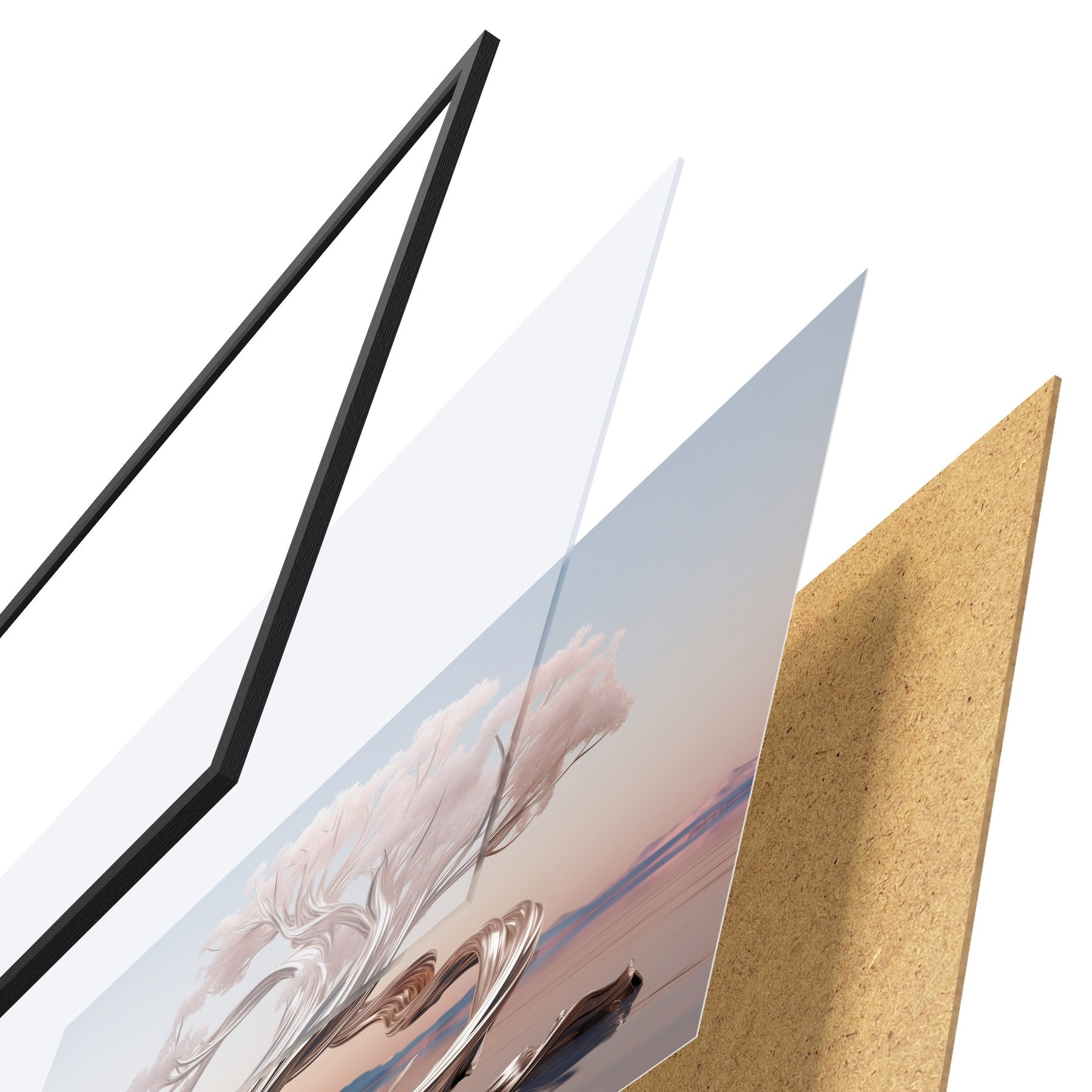 Plakāts sastāv no rāmja, pleksstikla, iespiestā attēla un skaidu plātnes pamatnes. Plakātu var uzreiz piekarināt pie sienas, pateicoties aizmugurē esošajiem stiprinājumiem.