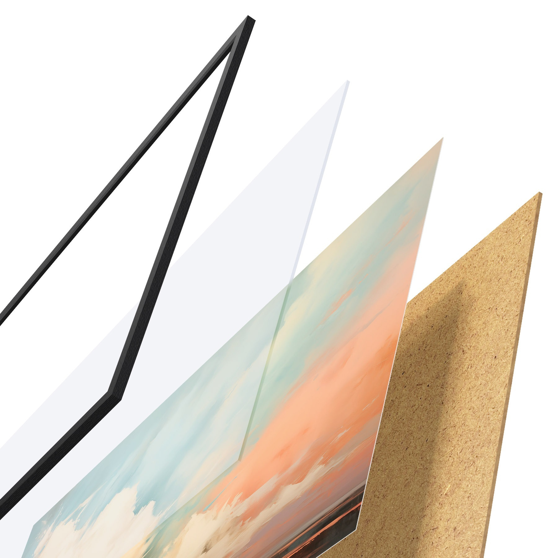 Plakāts sastāv no rāmja, pleksstikla, iespiestā attēla un skaidu plātnes pamatnes. Plakātu var uzreiz piekarināt pie sienas, pateicoties aizmugurē esošajiem stiprinājumiem.