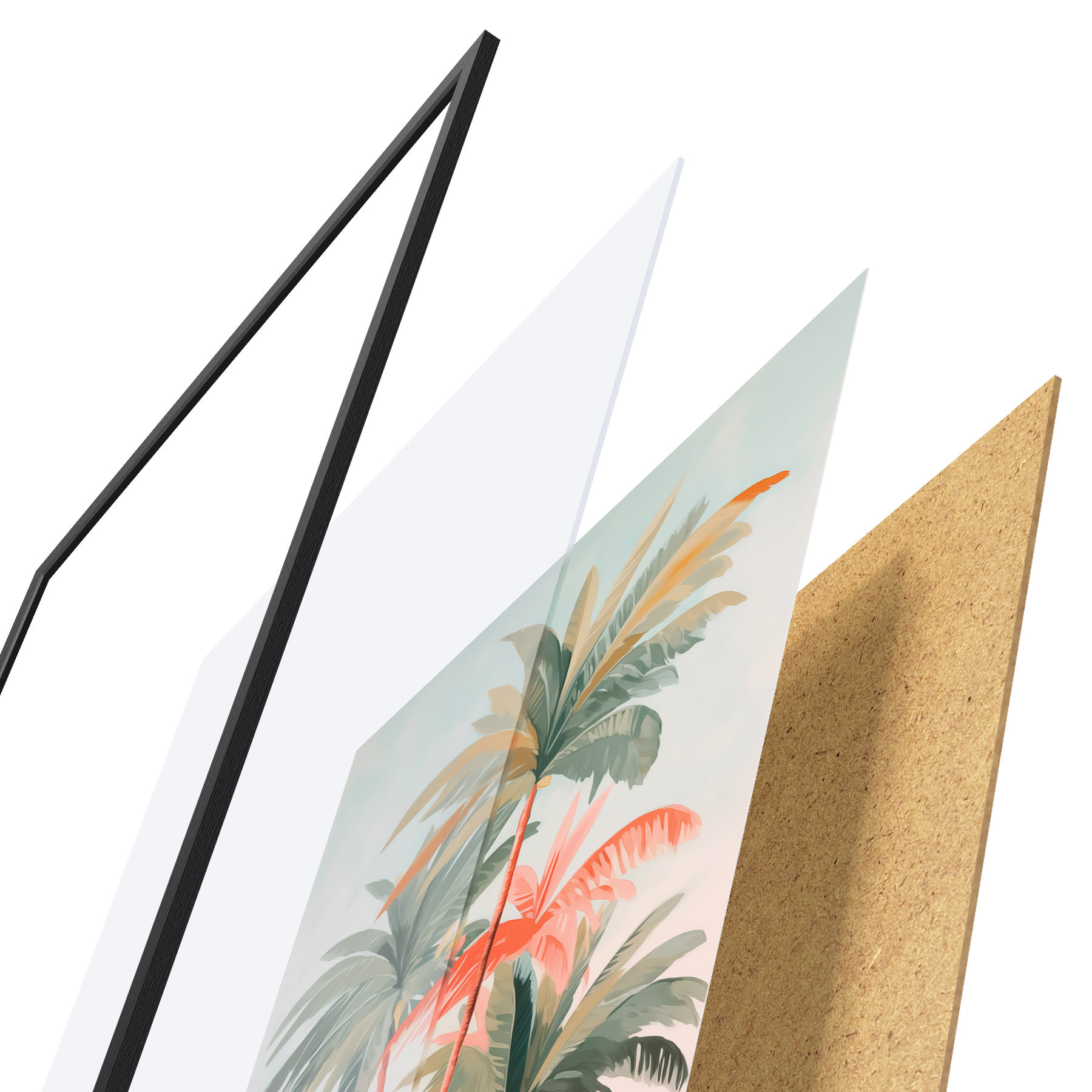 Plakāts sastāv no rāmja, pleksstikla, iespiestā attēla un skaidu plātnes pamatnes. Plakātu var uzreiz piekarināt pie sienas, pateicoties aizmugurē esošajiem stiprinājumiem.