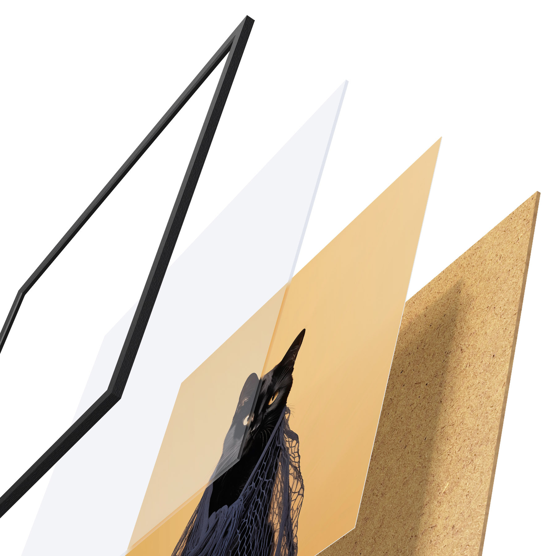 Plakāts sastāv no rāmja, pleksstikla, iespiestā attēla un skaidu plātnes pamatnes. Plakātu var uzreiz piekarināt pie sienas, pateicoties aizmugurē esošajiem stiprinājumiem.
