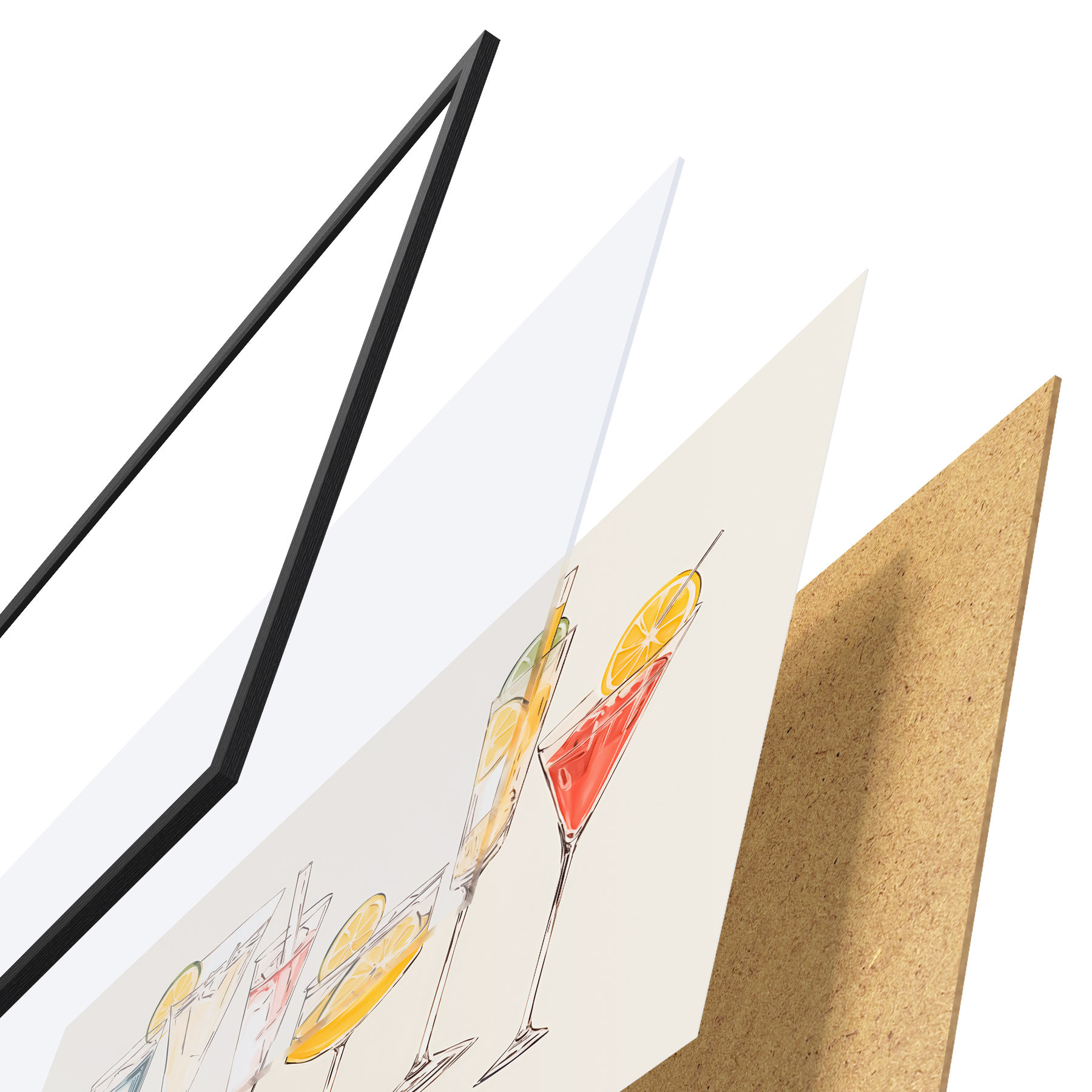Plakāts sastāv no rāmja, pleksstikla, iespiestā attēla un skaidu plātnes pamatnes. Plakātu var uzreiz piekarināt pie sienas, pateicoties aizmugurē esošajiem stiprinājumiem.