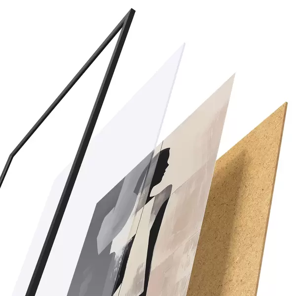 Plakāts sastāv no rāmja, pleksstikla, iespiestā attēla un skaidu plātnes pamatnes. Plakātu var uzreiz piekarināt pie sienas, pateicoties aizmugurē esošajiem stiprinājumiem.