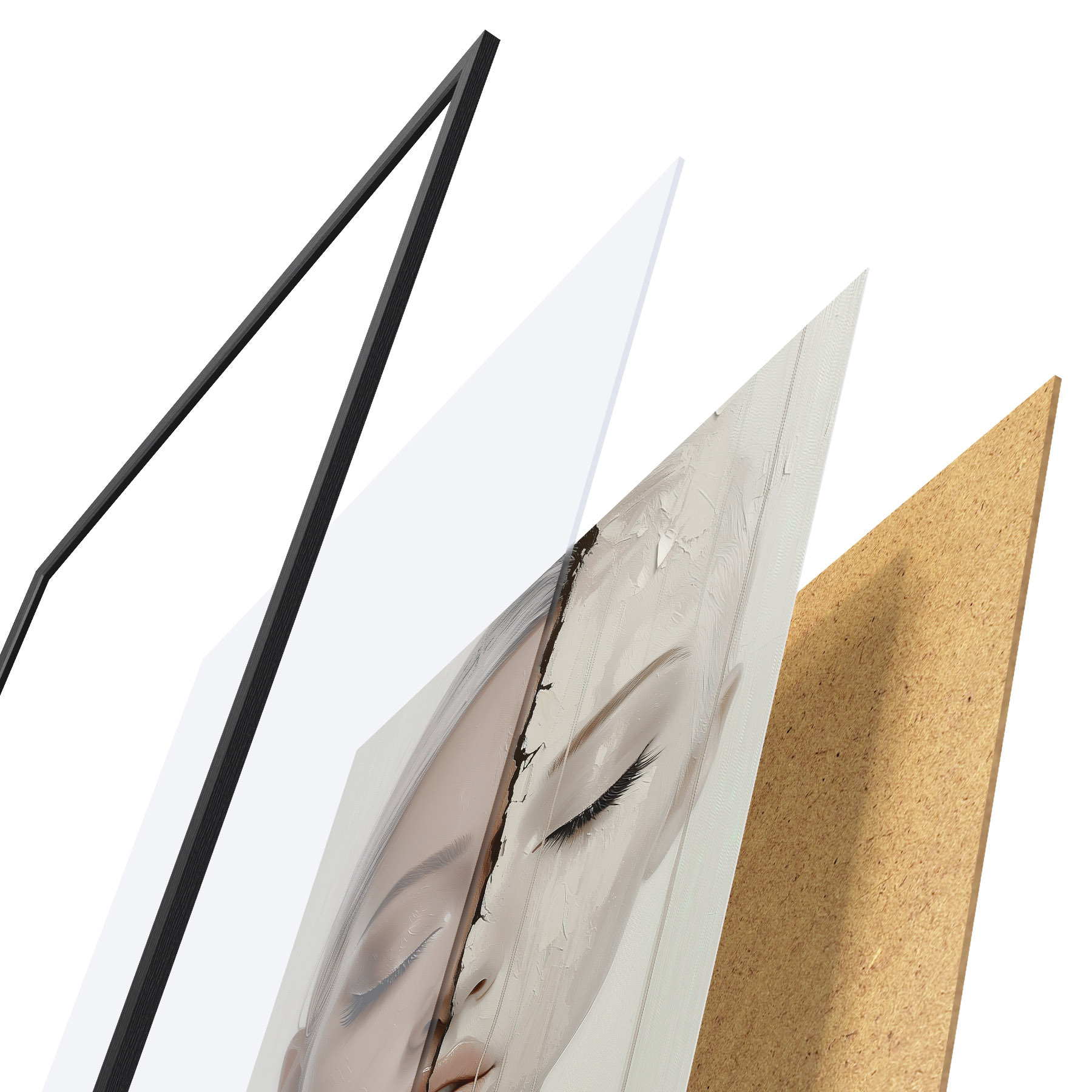 Plakāts sastāv no rāmja, pleksstikla, iespiestā attēla un skaidu plātnes pamatnes. Plakātu var uzreiz piekarināt pie sienas, pateicoties aizmugurē esošajiem stiprinājumiem.