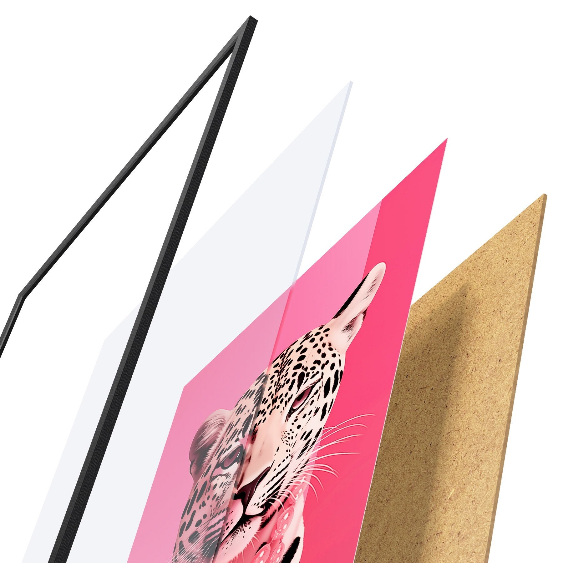 Plakāts sastāv no rāmja, pleksstikla, iespiestā attēla un skaidu plātnes pamatnes. Plakātu var uzreiz piekarināt pie sienas, pateicoties aizmugurē esošajiem stiprinājumiem.