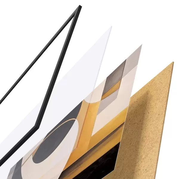 Plakāts sastāv no rāmja, pleksstikla, iespiestā attēla un skaidu plātnes pamatnes. Plakātu var uzreiz piekarināt pie sienas, pateicoties aizmugurē esošajiem stiprinājumiem.