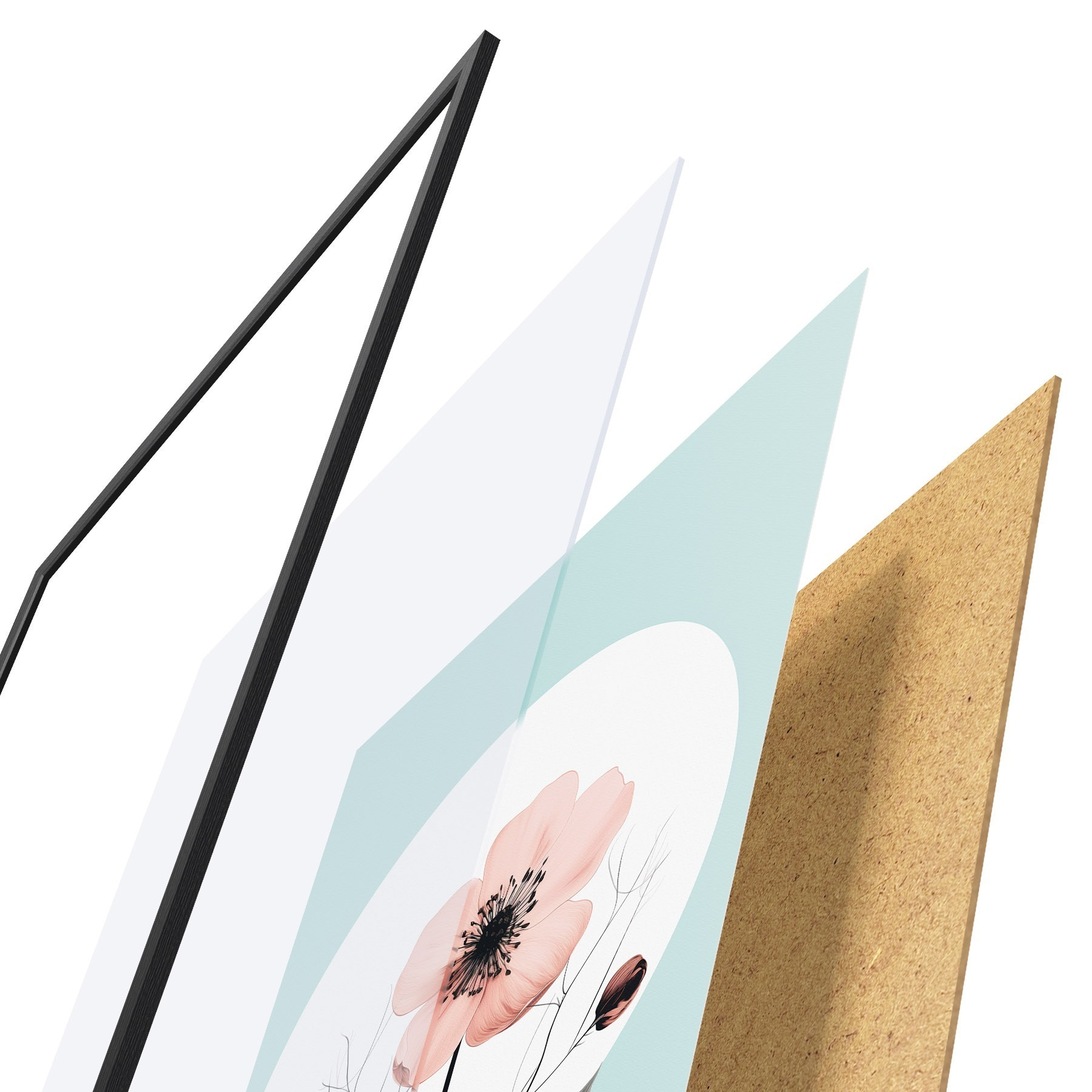Plakāts sastāv no rāmja, pleksstikla, iespiestā attēla un skaidu plātnes pamatnes. Plakātu var uzreiz piekarināt pie sienas, pateicoties aizmugurē esošajiem stiprinājumiem.