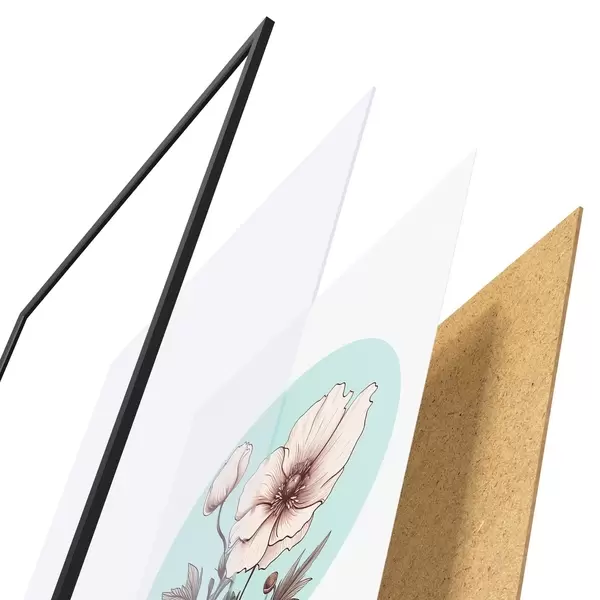 Plakāts sastāv no rāmja, pleksstikla, iespiestā attēla un skaidu plātnes pamatnes. Plakātu var uzreiz piekarināt pie sienas, pateicoties aizmugurē esošajiem stiprinājumiem.