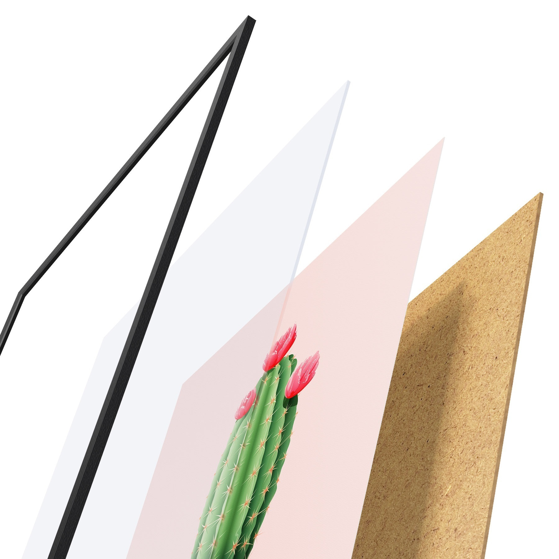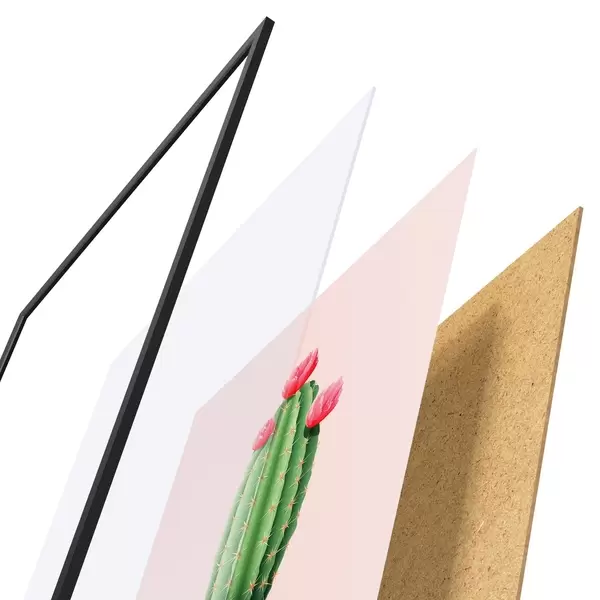 Plakāts sastāv no rāmja, pleksstikla, iespiestā attēla un skaidu plātnes pamatnes. Plakātu var uzreiz piekarināt pie sienas, pateicoties aizmugurē esošajiem stiprinājumiem.