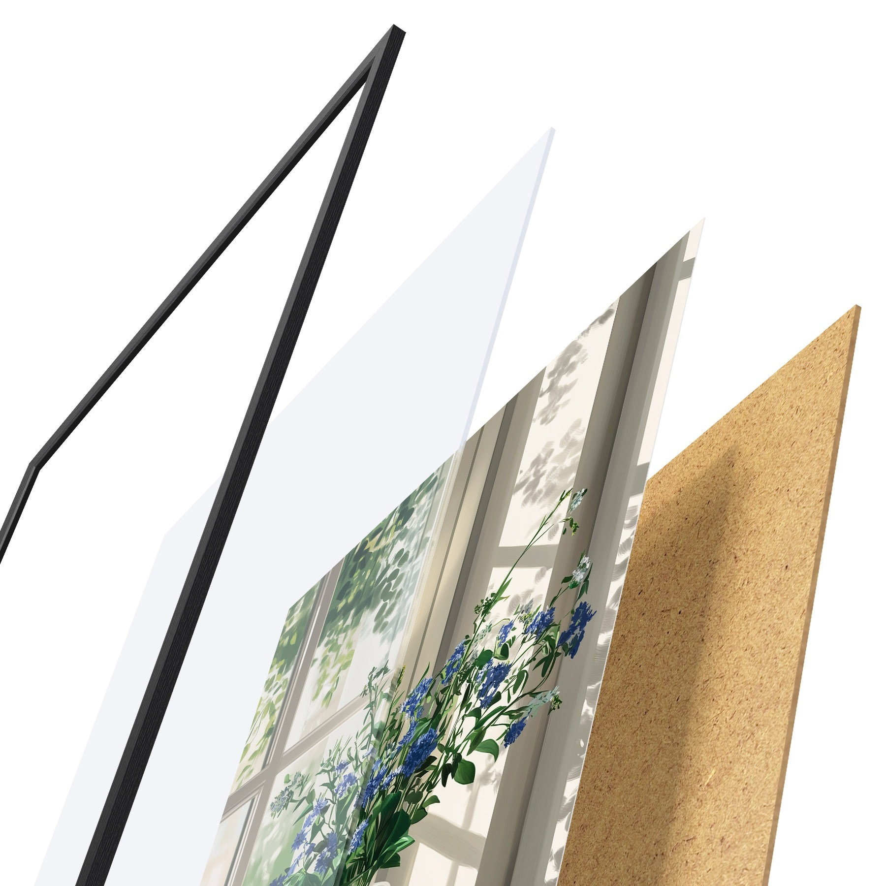 Plakāts sastāv no rāmja, pleksstikla, iespiestā attēla un skaidu plātnes pamatnes. Plakātu var uzreiz piekarināt pie sienas, pateicoties aizmugurē esošajiem stiprinājumiem.