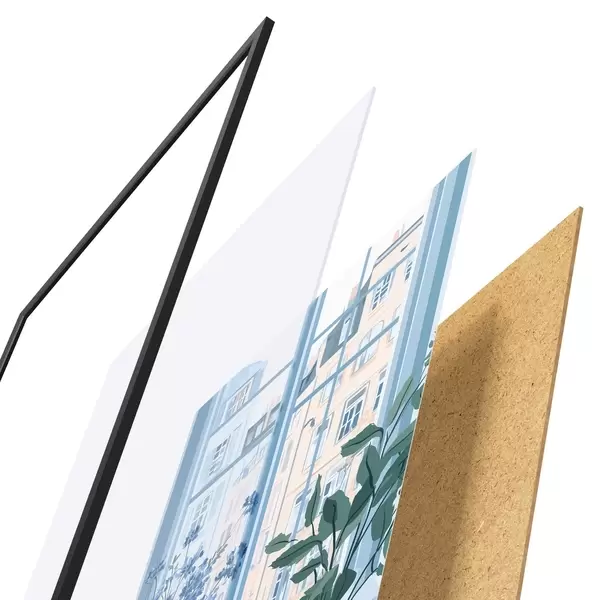 Plakāts sastāv no rāmja, pleksstikla, iespiestā attēla un skaidu plātnes pamatnes. Plakātu var uzreiz piekarināt pie sienas, pateicoties aizmugurē esošajiem stiprinājumiem.