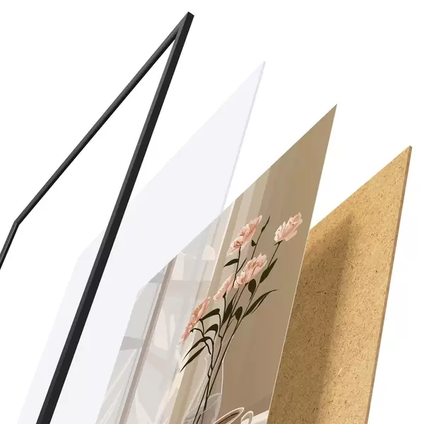 Plakāts sastāv no rāmja, pleksstikla, iespiestā attēla un skaidu plātnes pamatnes. Plakātu var uzreiz piekarināt pie sienas, pateicoties aizmugurē esošajiem stiprinājumiem.