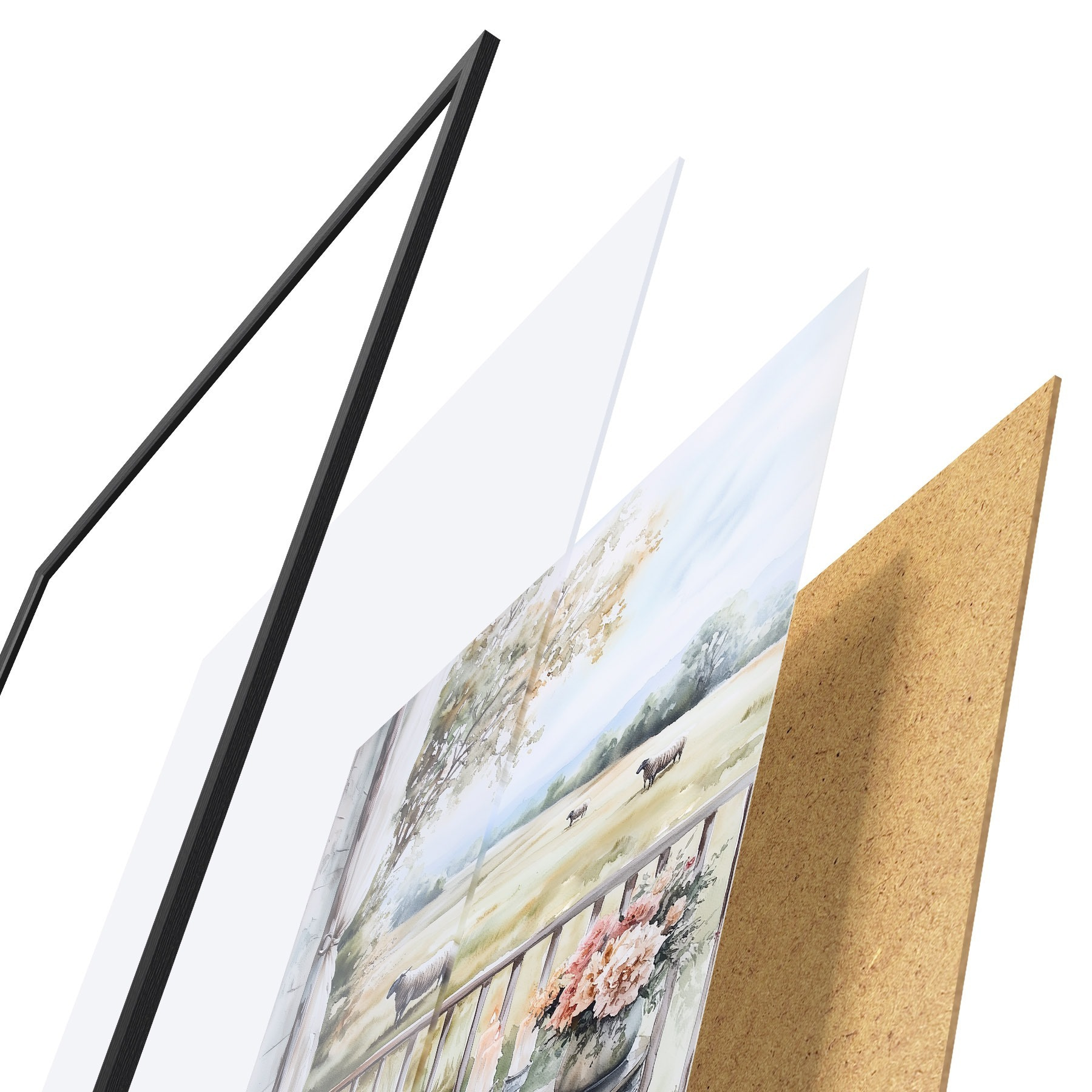 Plakāts sastāv no rāmja, pleksstikla, iespiestā attēla un skaidu plātnes pamatnes. Plakātu var uzreiz piekarināt pie sienas, pateicoties aizmugurē esošajiem stiprinājumiem.