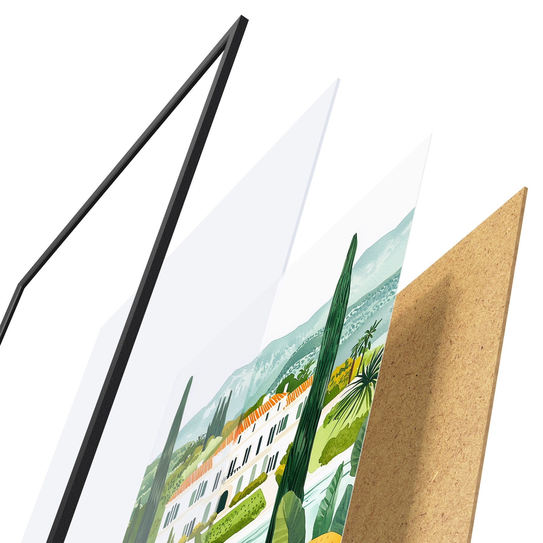 Plakāts sastāv no rāmja, pleksstikla, iespiestā attēla un skaidu plātnes pamatnes. Plakātu var uzreiz piekarināt pie sienas, pateicoties aizmugurē esošajiem stiprinājumiem.