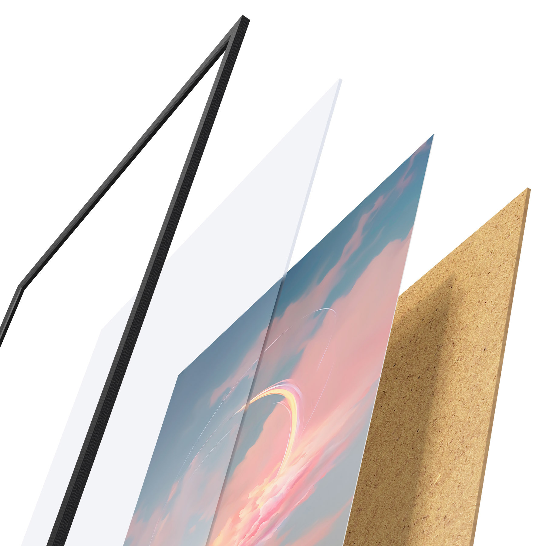 Plakāts sastāv no rāmja, pleksstikla, iespiestā attēla un skaidu plātnes pamatnes. Plakātu var uzreiz piekarināt pie sienas, pateicoties aizmugurē esošajiem stiprinājumiem.