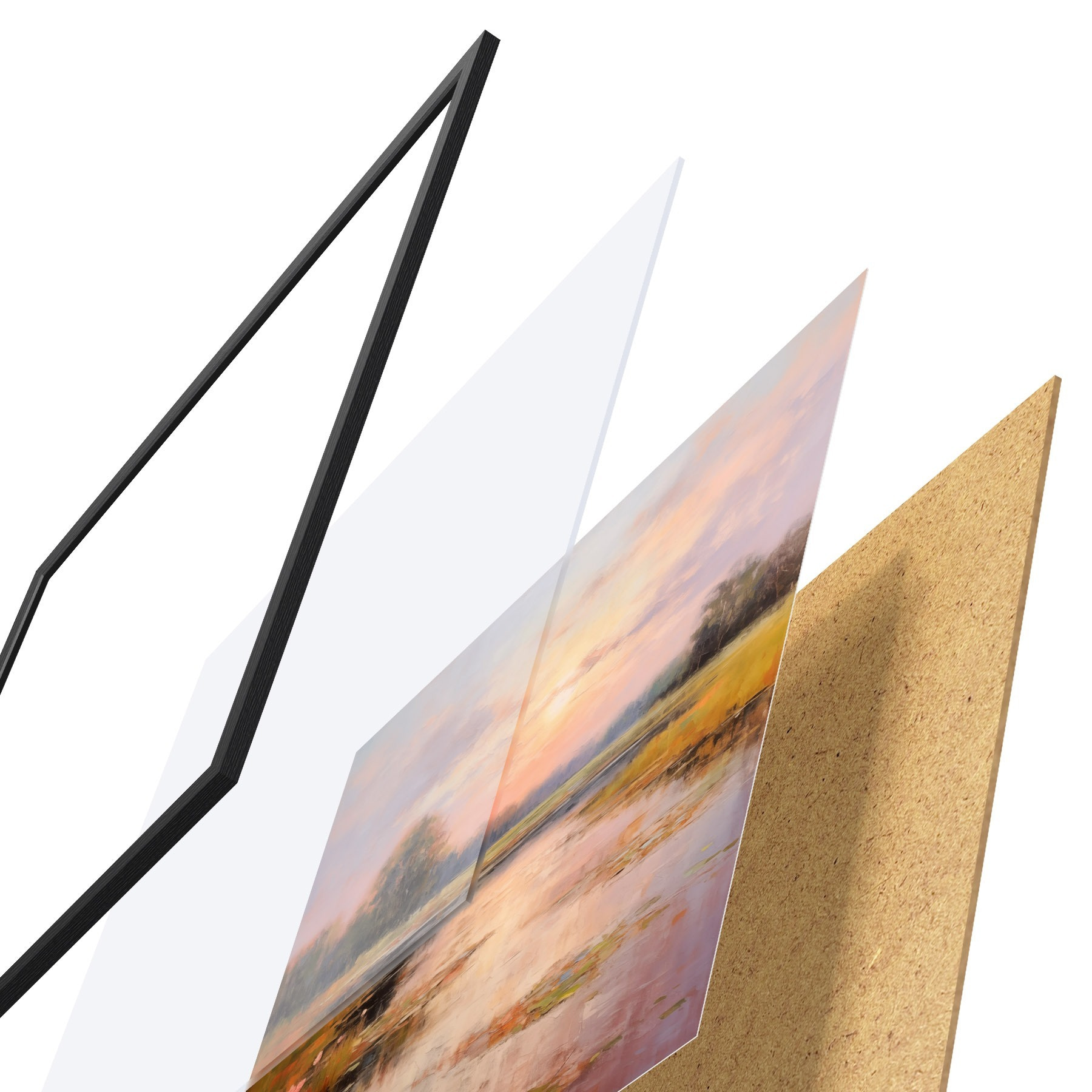 Plakāts sastāv no rāmja, pleksstikla, iespiestā attēla un skaidu plātnes pamatnes. Plakātu var uzreiz piekarināt pie sienas, pateicoties aizmugurē esošajiem stiprinājumiem.