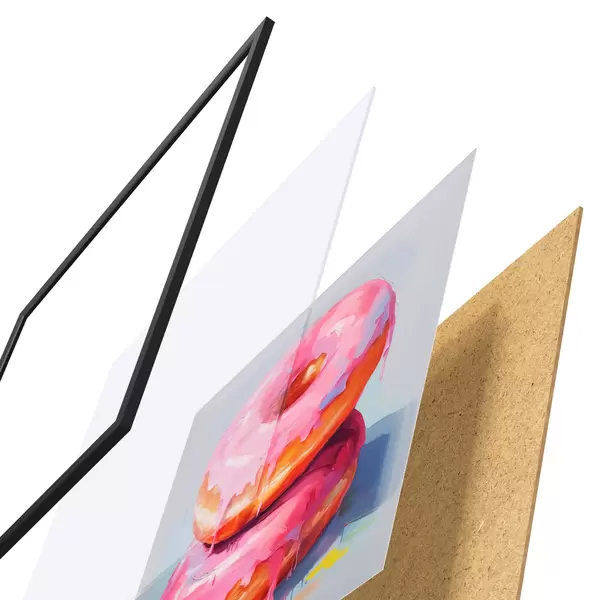 Plakāts sastāv no rāmja, pleksstikla, iespiestā attēla un skaidu plātnes pamatnes. Plakātu var uzreiz piekarināt pie sienas, pateicoties aizmugurē esošajiem stiprinājumiem.