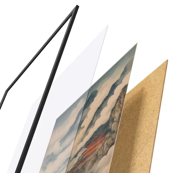 Plakāts sastāv no rāmja, pleksstikla, iespiestā attēla un skaidu plātnes pamatnes. Plakātu var uzreiz piekarināt pie sienas, pateicoties aizmugurē esošajiem stiprinājumiem.