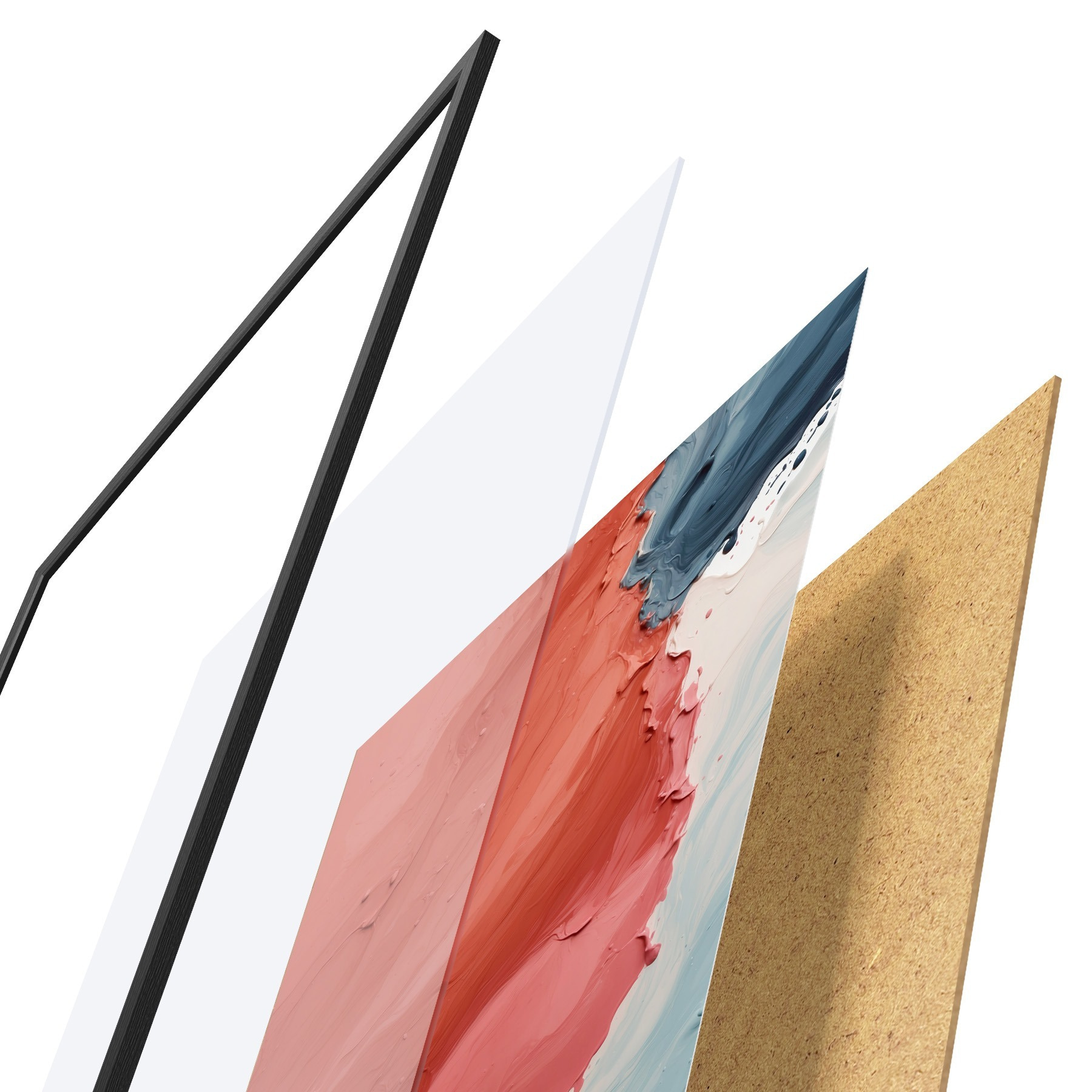 Plakāts sastāv no rāmja, pleksstikla, iespiestā attēla un skaidu plātnes pamatnes. Plakātu var uzreiz piekarināt pie sienas, pateicoties aizmugurē esošajiem stiprinājumiem.