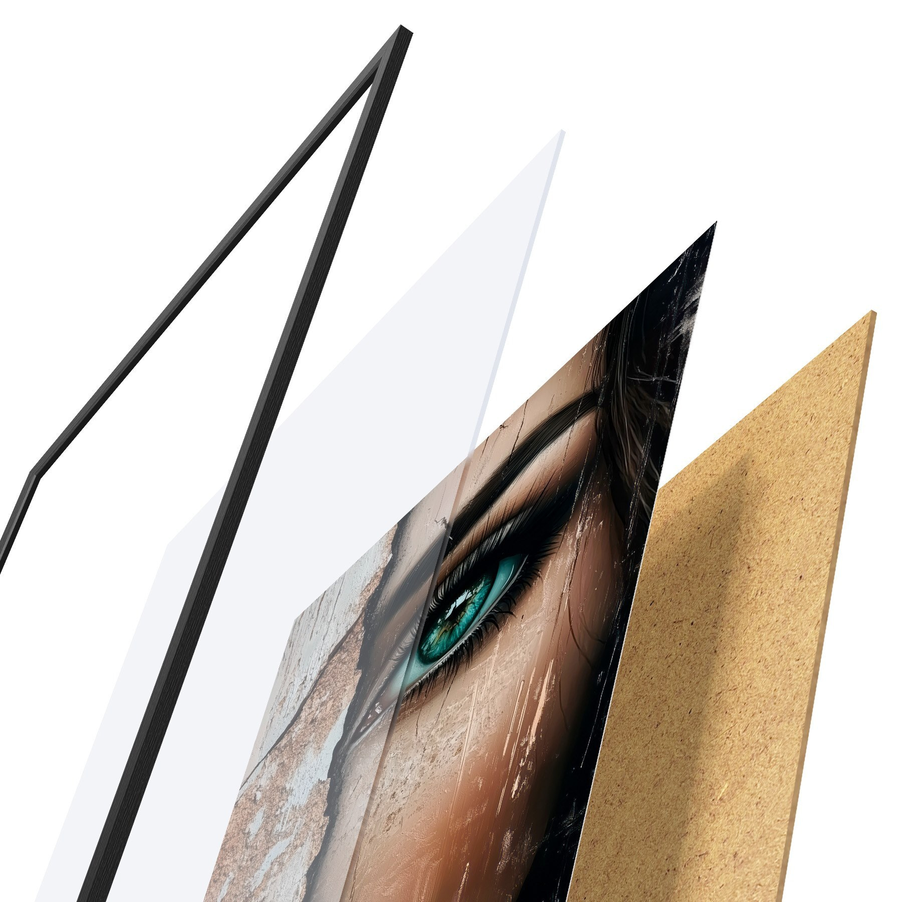 Plakāts sastāv no rāmja, pleksstikla, iespiestā attēla un skaidu plātnes pamatnes. Plakātu var uzreiz piekarināt pie sienas, pateicoties aizmugurē esošajiem stiprinājumiem.